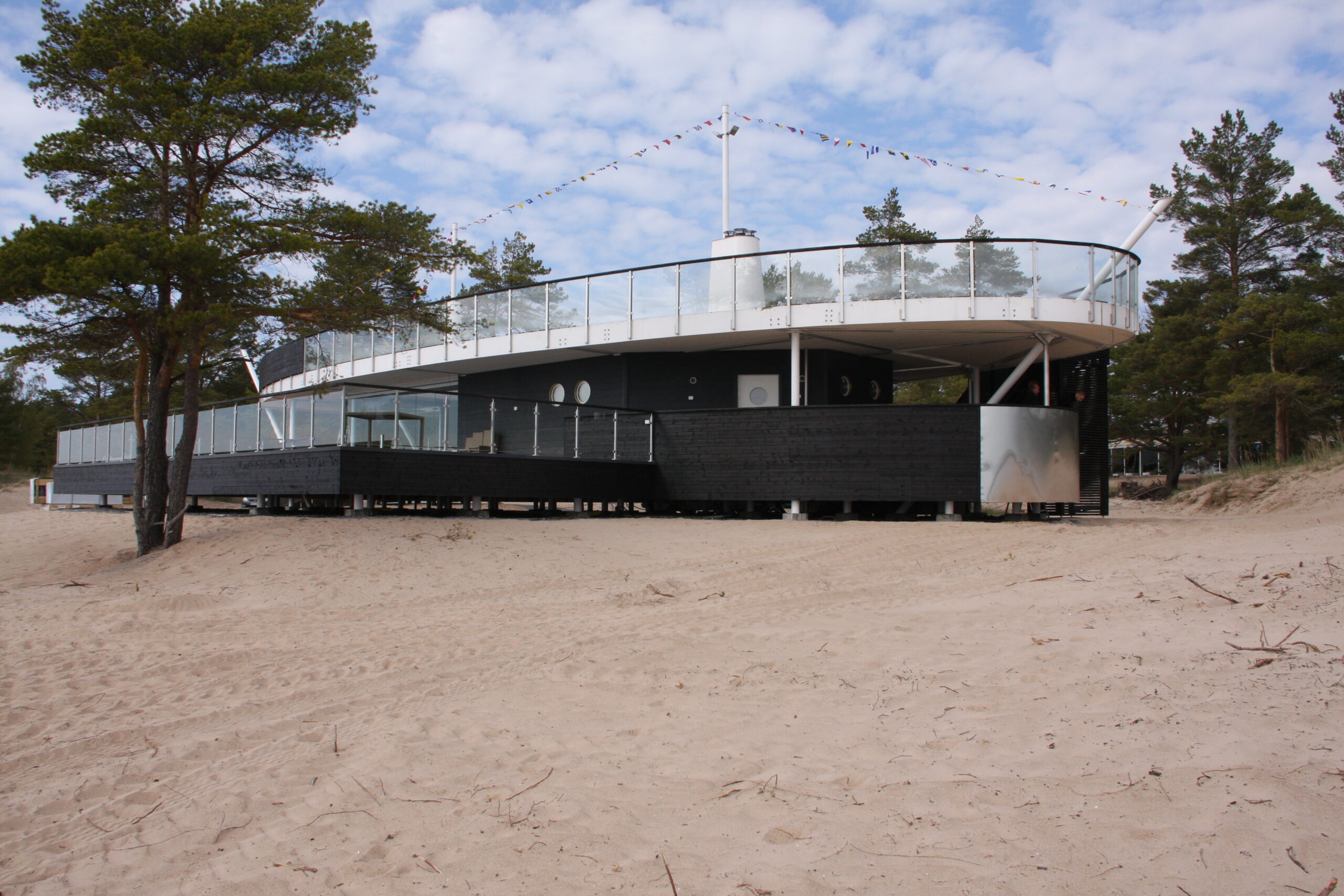 -laivan muotoinen ravintola Helmi Porin Yyterissä